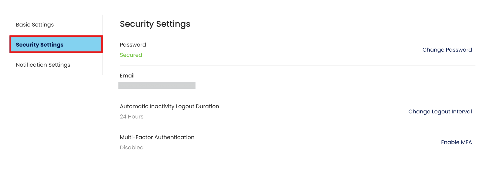 Go to Security Settings.