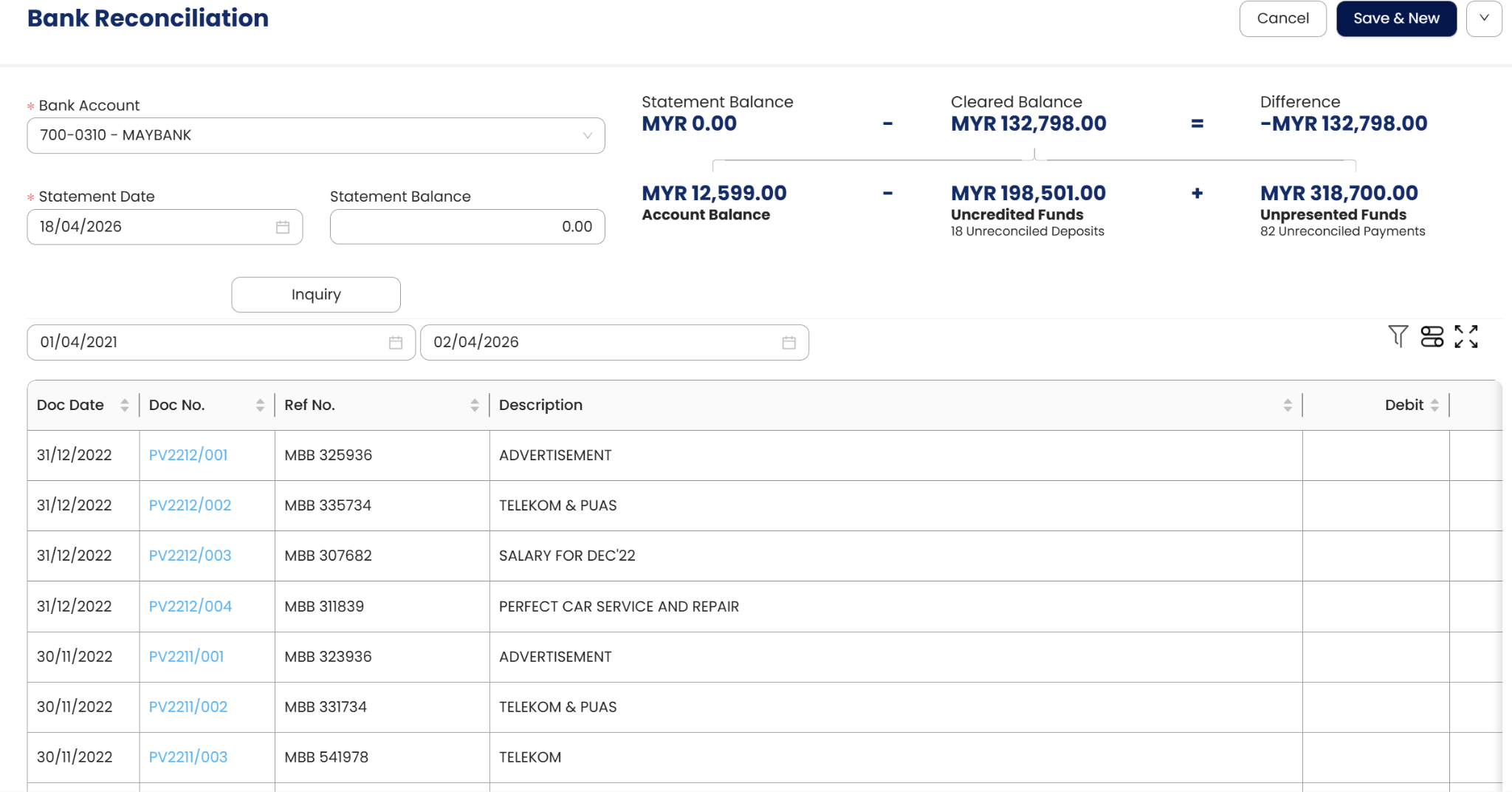 Bank Reconciliation or the process to reconcile Cash/Bank Balance with the actual Bank Statement can be performed in the system to help the business see if there’s any accounting adjustment required, and maintain the accuracy of the company's Cash/Bank Accounts in the General Ledger.