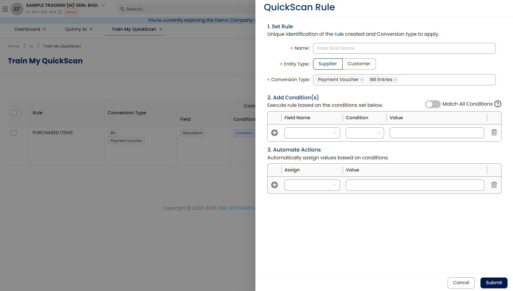 User can utilize Train My Quickscan to save keywords into their own system and reduce manual data entry work to minimal.