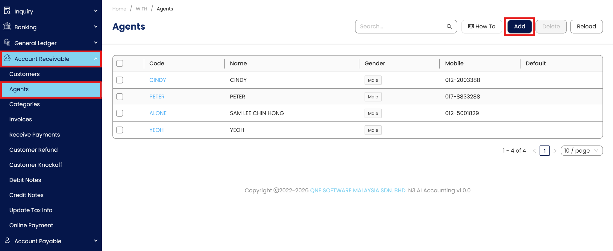 In the navigation pane, go to Accounts Receivable, and click on Agents.