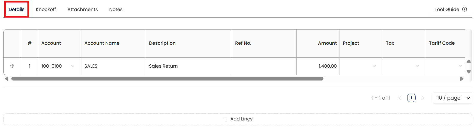 Then in the Details tab, search for the GL Account, and input the other details such as Amount, Ref No., and the Tax Code if applicable.
