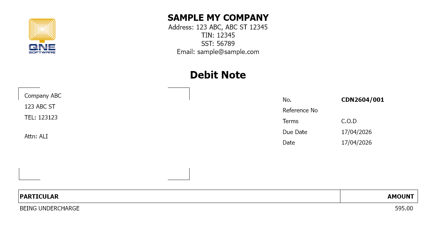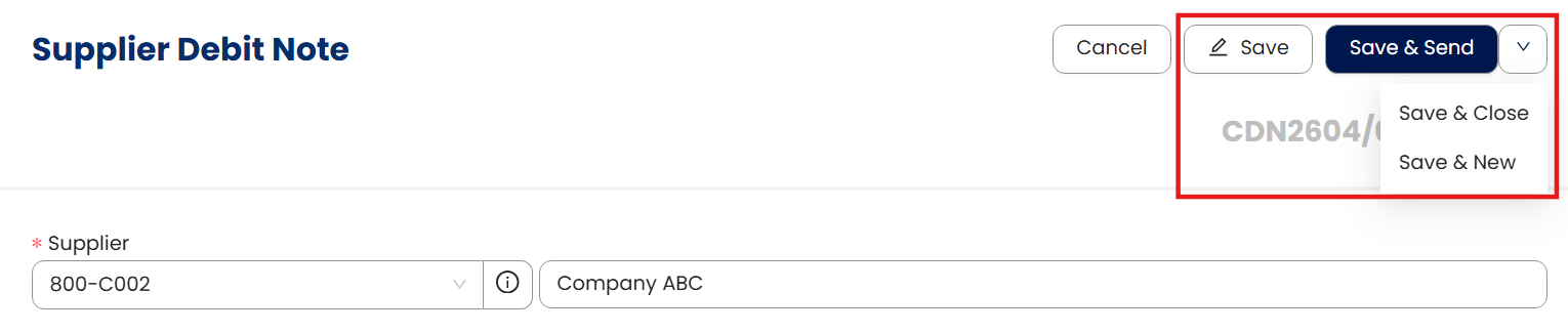 Supplier Debit Note is a form used to document an adjustment of an inaccurate figure or additional charges from your supplier, increasing your Accounts Payable.