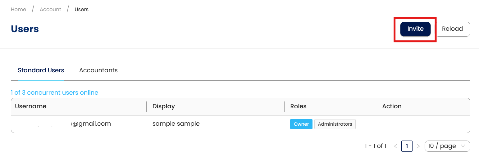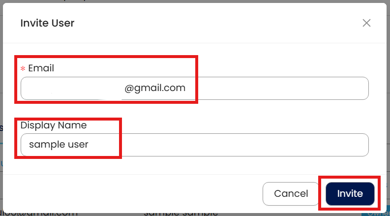 Insert Email Address and Display Name, then Press Invite