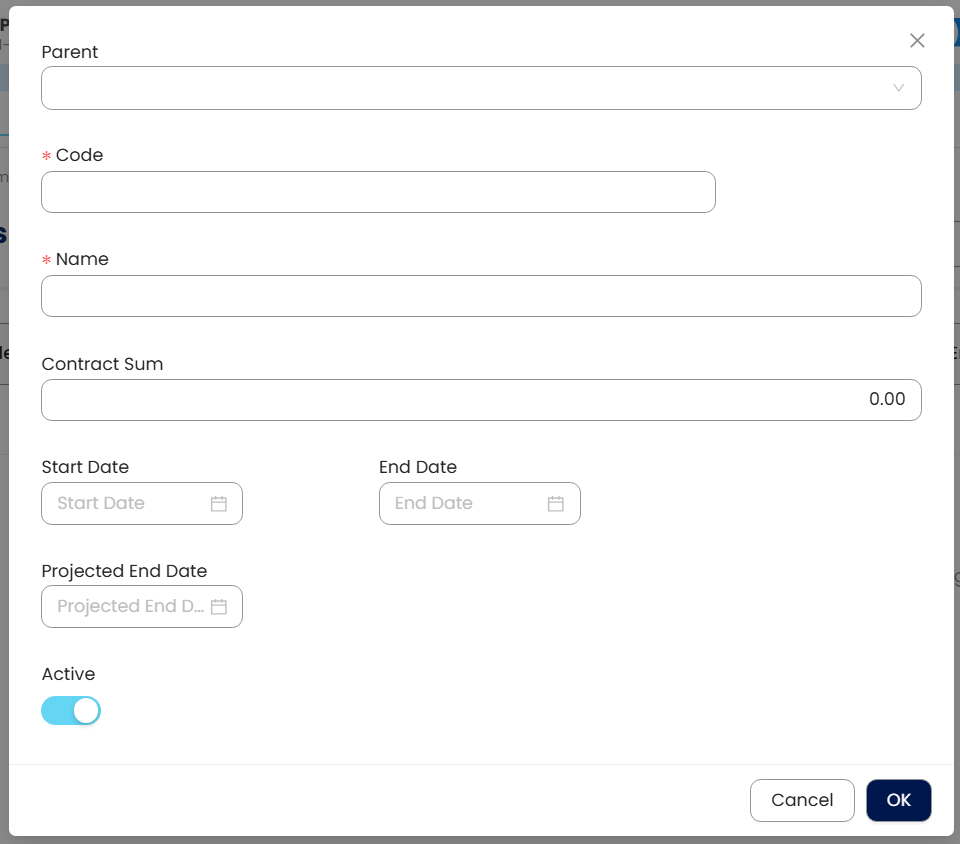 Active button – The button to specify an active or inactive project.