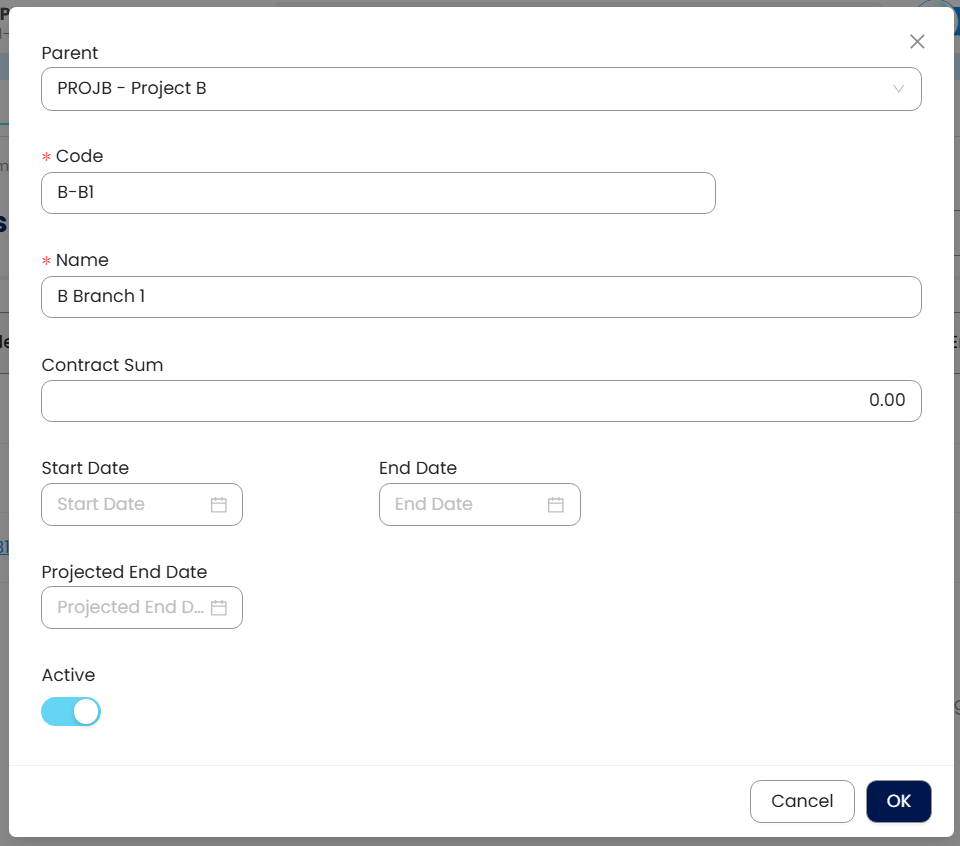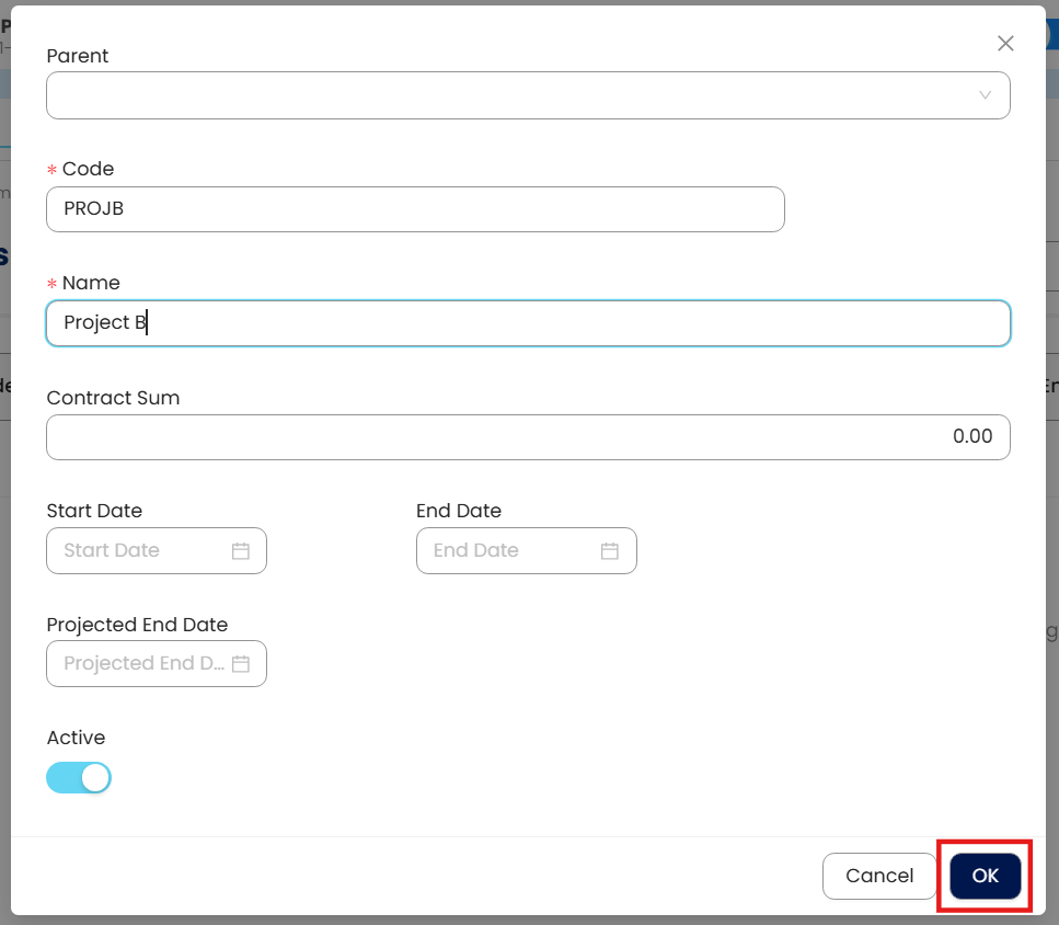 Parent – The mother project of created sub-projects, this is optional.
