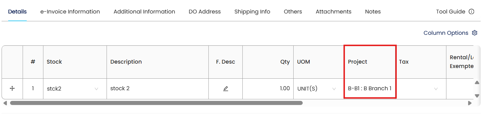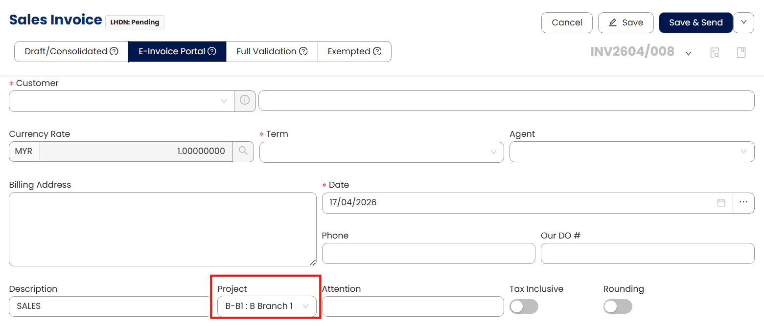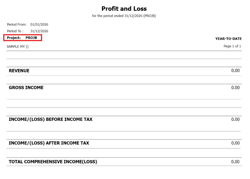 Note: Only Sub-Projects can be selected in transaction while both Main and Sub Projects can be used in filtering when generating Project Related Reports.