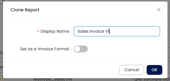 Step 4 - After Press Design Button, a Clone Report pop out Box will appear request to give this report a new Name.