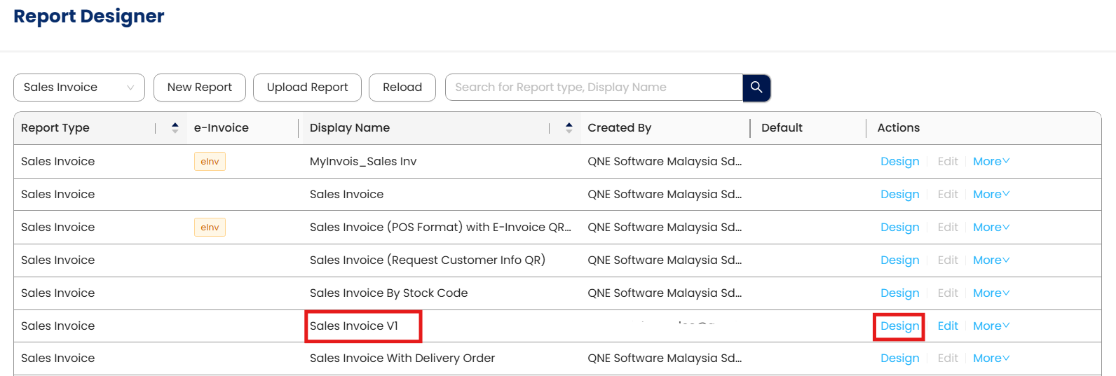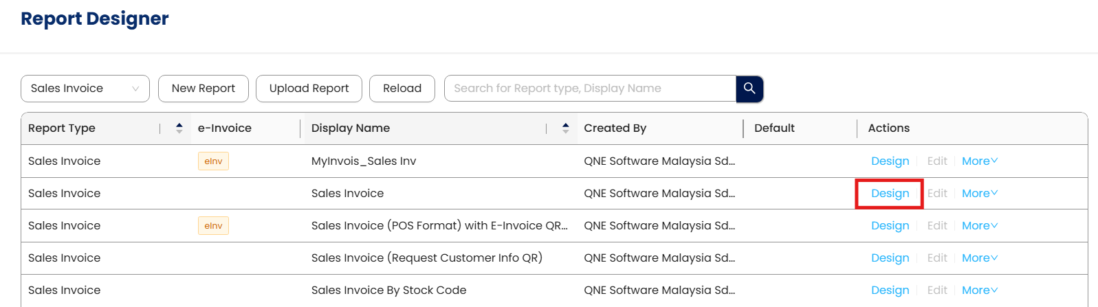 Step 3 - there is 2 Predefine Format which Provided by QNE Software, Example i wants to Design a different term and conditions with Sales Invoice with SST Format, Press Design button.