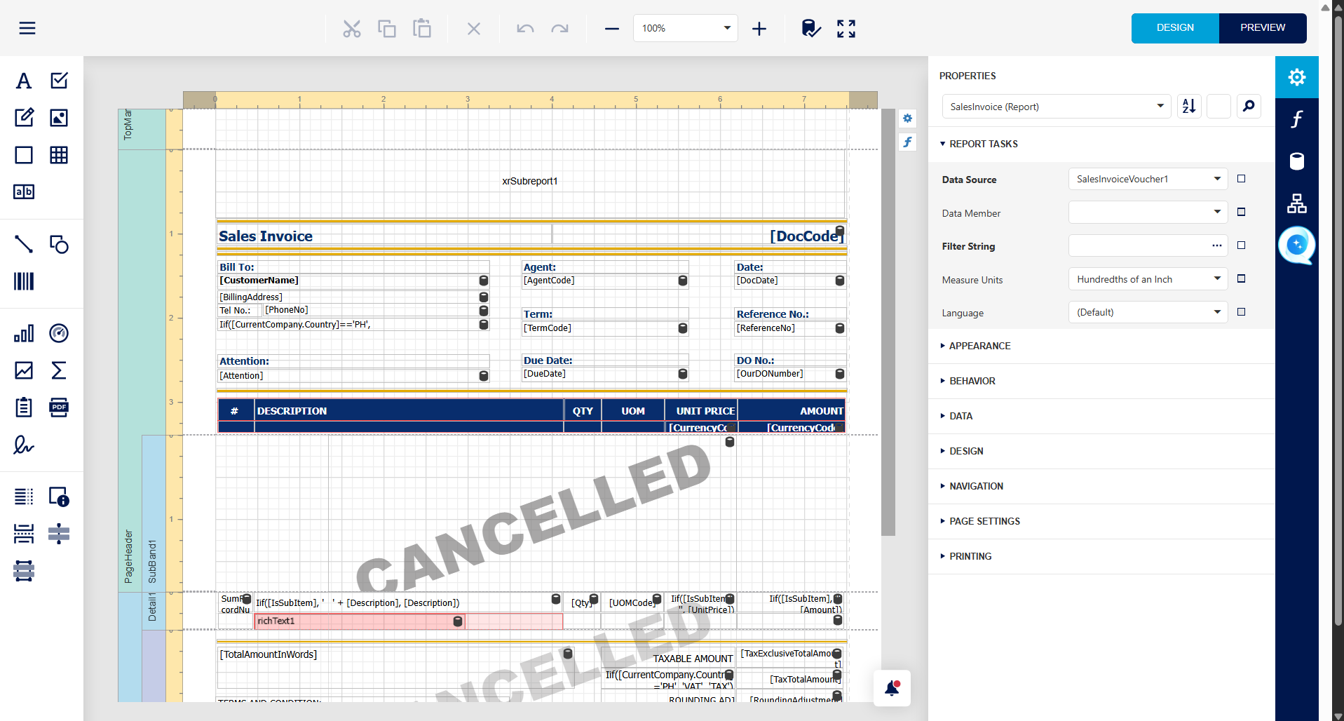 Step 6 - System will zoom user to report designer page