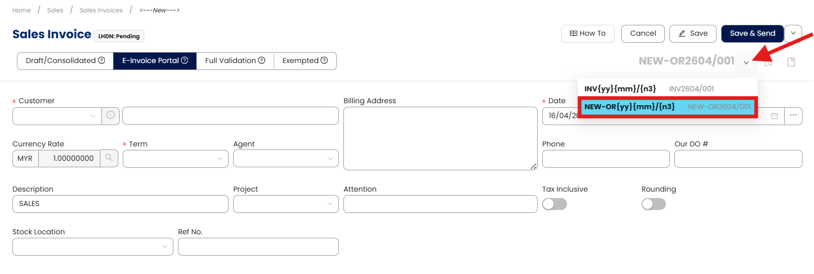 In Transaction Screen user are require to manual change the running number set by pressing dropdown button of running number