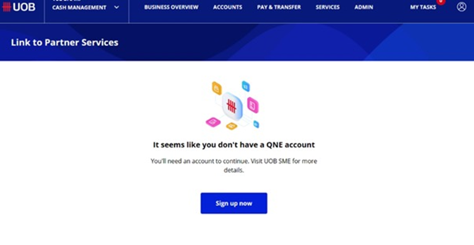 After Partner Services screen, selected company and click for Link account, but the screen show ‘It seems like you don’t have a QNE account’