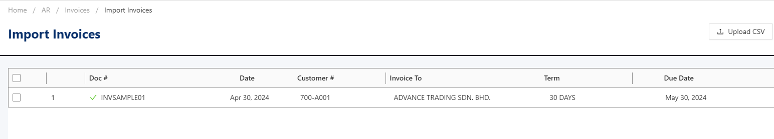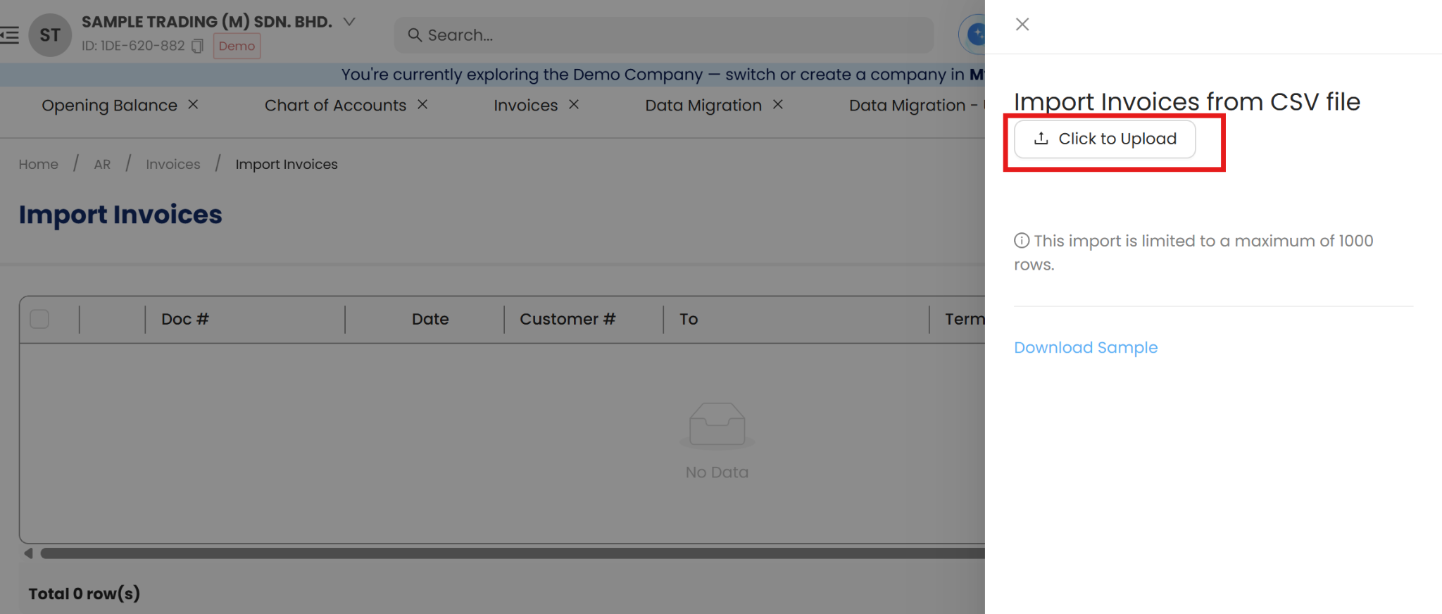 Step 3 - After finish prepare the invoice Excel, at the same screen Press 'Click to Upload'