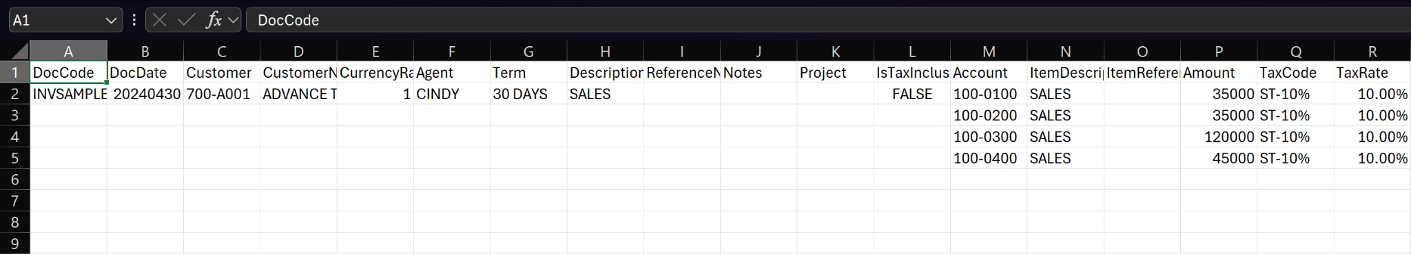 Note: this is how sample Excel CSV look like, this is 1 transaction sample.