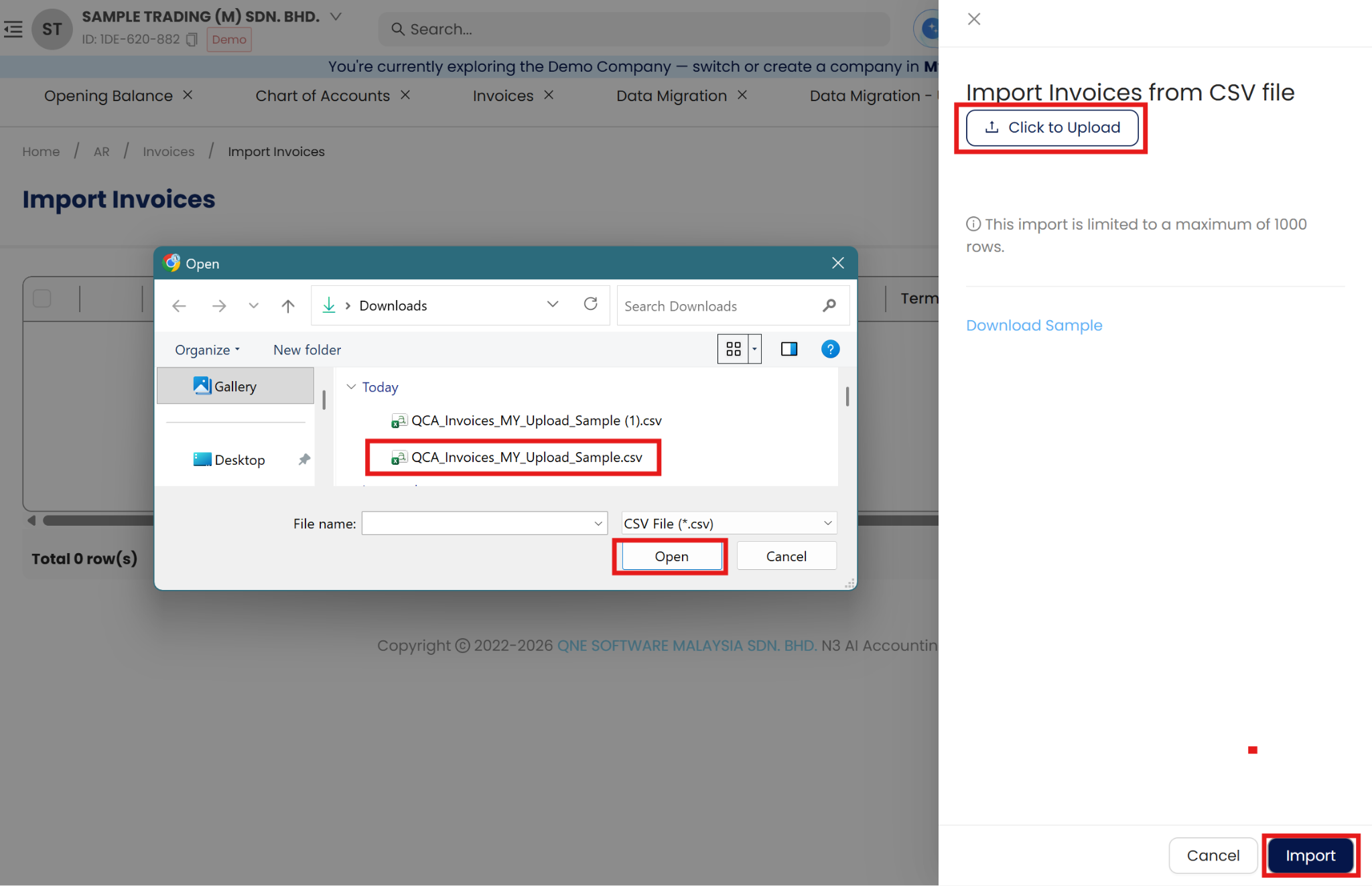 Step 4 - After Press Click to Upload, then browse the excel, Press Open > then press import