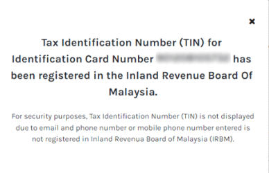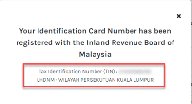 The registered income tax number and LHDN (Inland Revenue Board of Malaysia) branch details will be displayed