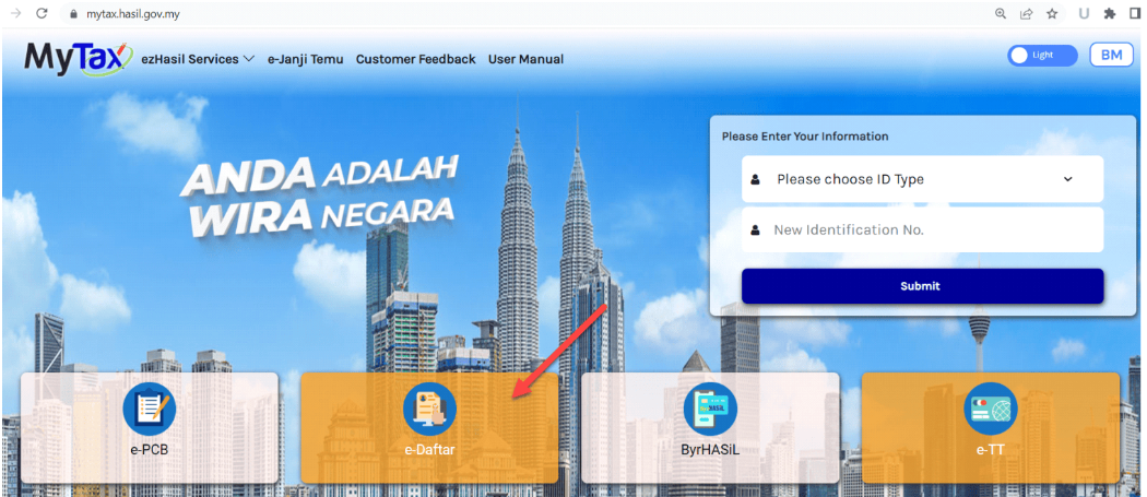 Go to https://mytax.hasil.gov.my/ and click on the “e-Daftar” option.