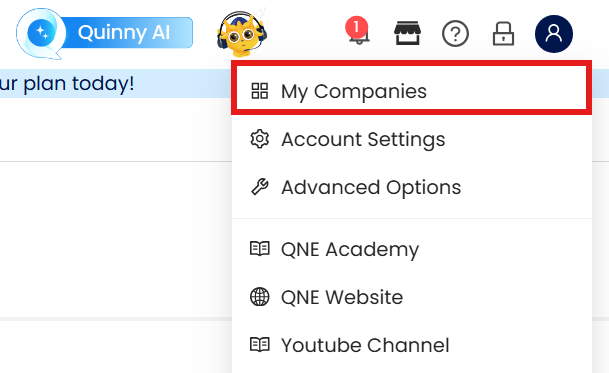 Mouse over to the User Profile Icon in the upper right corner and click on My Companies in the dropdown selections.