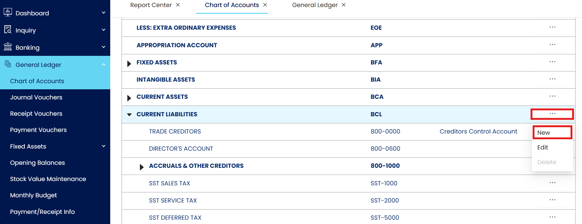 Expand General Ledger > Press 'Chart of Account'