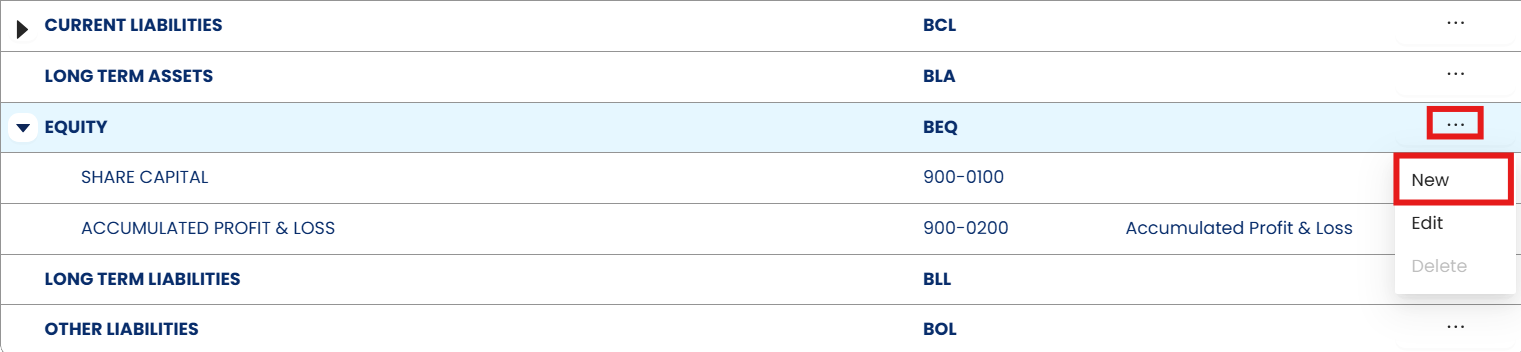 Press 3 dot Button which next to Equity > then Press 'New'.