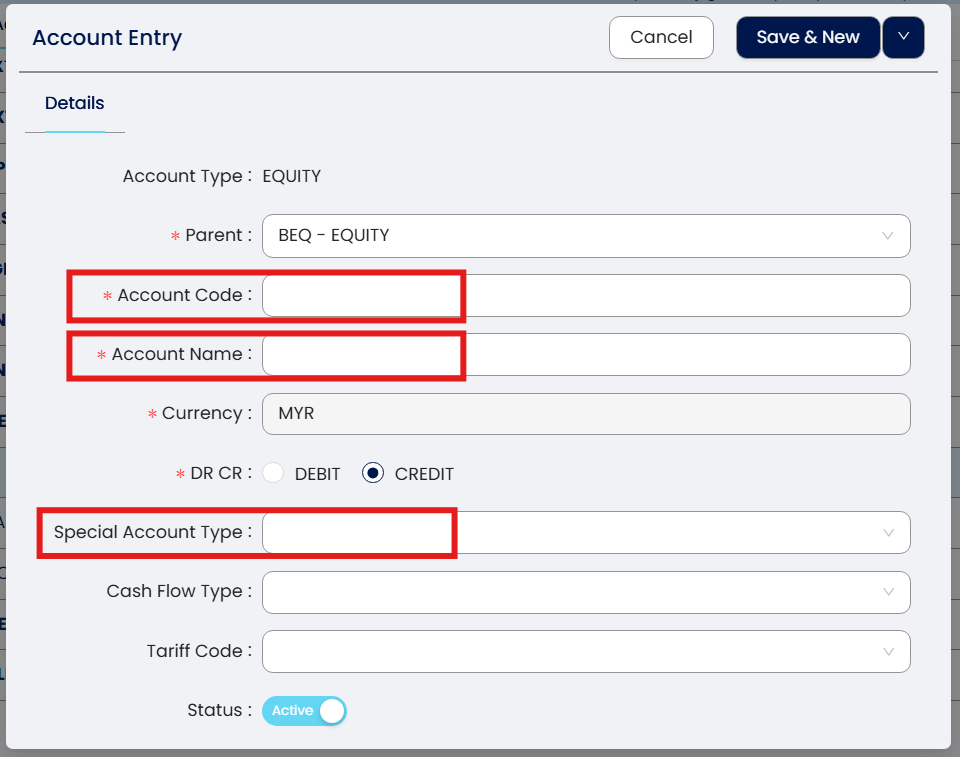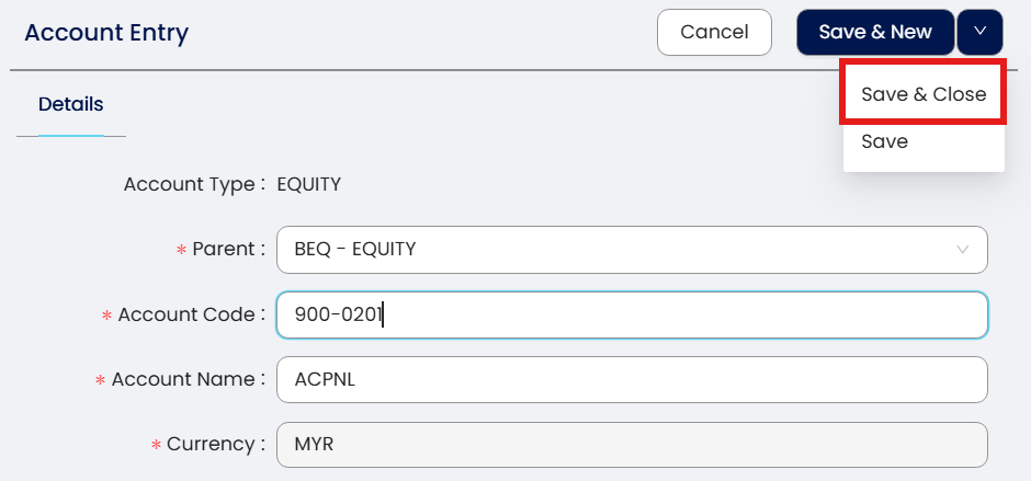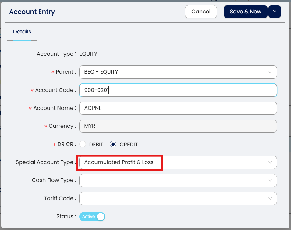 Note: Special Account type please select Accumulated Profit and Loss Account.