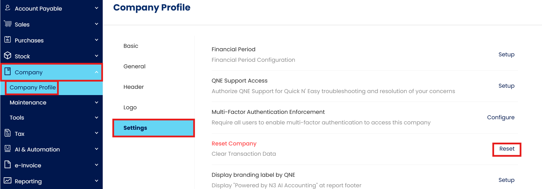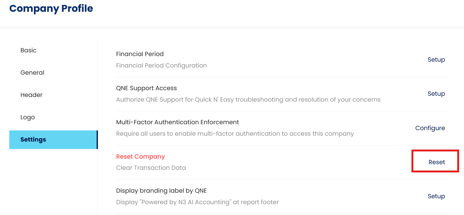 When using the N3 AI Accounting (formerly QNE AI Cloud Accounting) solution, managing company and transaction data is crucial. As your business evolves, there may be instances where you need to reset company information or clear transaction records. This guide will walk users through the simple steps to accomplish these tasks, ensuring system accuracy and data integrity.