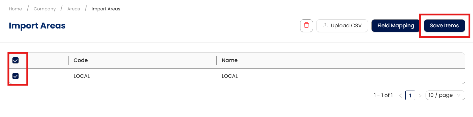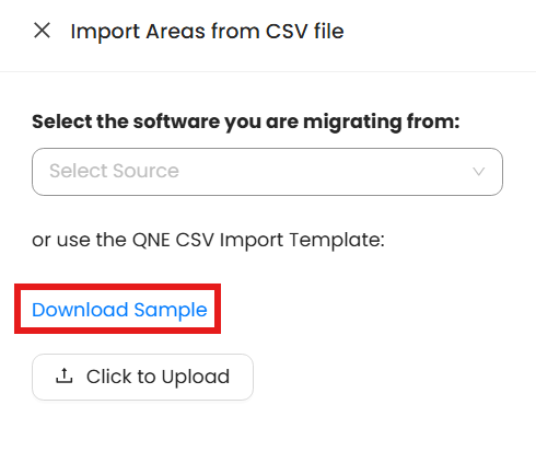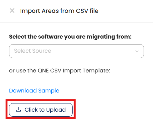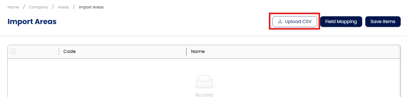 After Complete fill in the Areas CSV Template, Press Upload CSV of Import Areas.