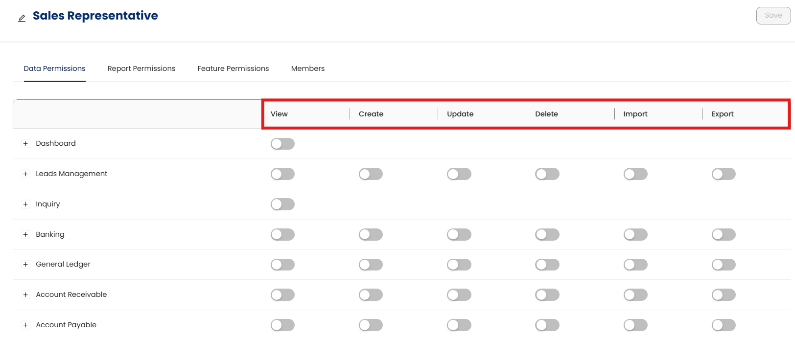 Feature Permissions: Representative user can view and amend relative features