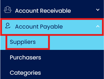 From the Navigation screen, go to Account Payable and select Suppliers.