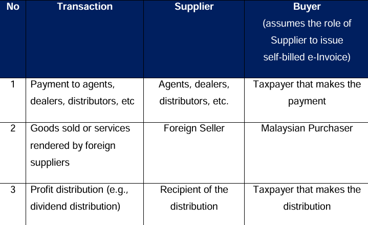 For the purpose of self-billed e-Invoice, the supplier must be of the following categories: