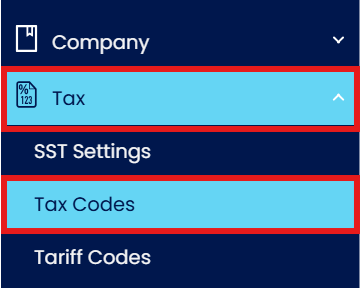 From the Navigation screen, head to Tax, then select Tax Codes.