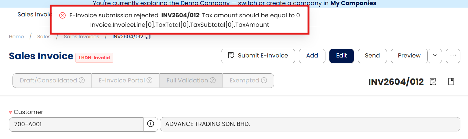 This article attempts at solving errors that appear when we try to submit an E-Invoice document which results in the status of the document appearing as Invalid.