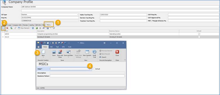 2. Let say a new MSIC Codes added – 47411 in the company profile.
