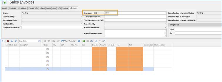 3. In transaction, system display the default MSIC codes