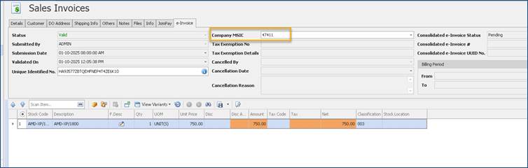 4. User can still change the MSIC codes accordingly and submit for e-Invoice