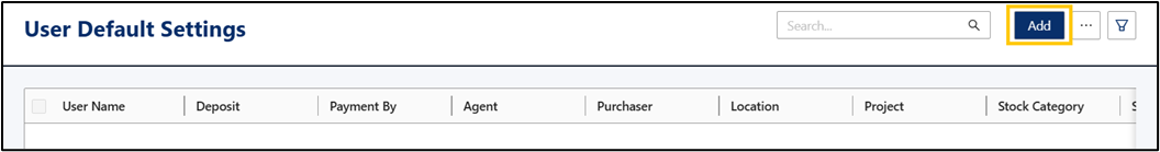 2. Create a New Setting for a User by clicking Add to create a User Default configuration.