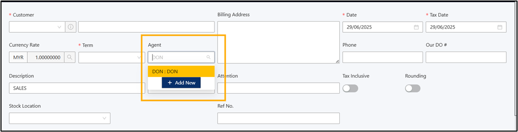 - Agent / Purchaser / Location / Project: Assign default selections for specific roles or attributes that the user frequently deals with.