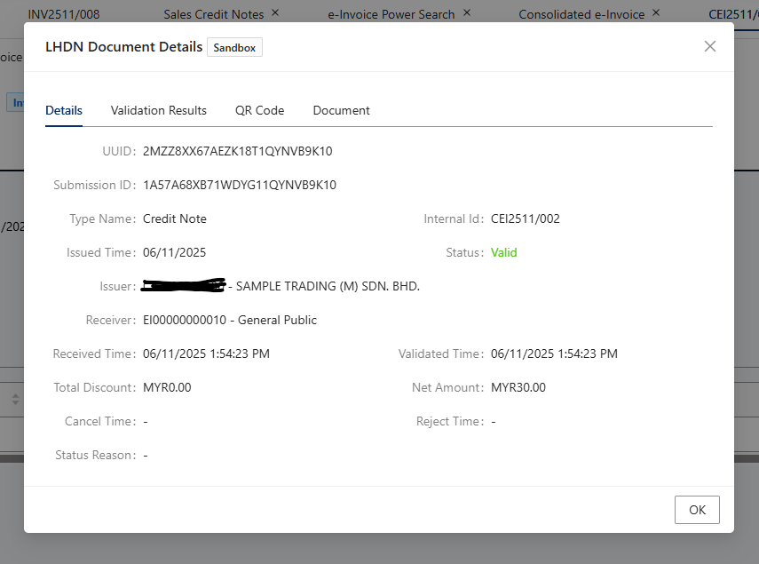 Upon completion of validation, UUID will be provided. And we’re done issuing Consolidated Credit Note with validation!