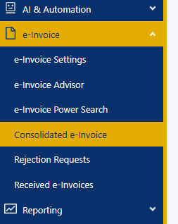 Next, we’ll proceed to issue the consolidated credit note. On your left side, click E-invoice > Consolidated e-invoice