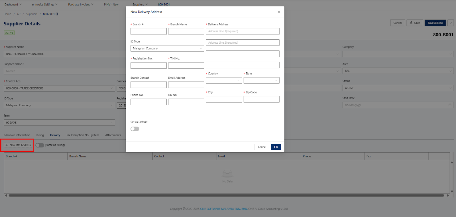 Once the address has been updated, the user must proceed to go to Purchase Invoice and reselect the Supplier again to get the updated information.