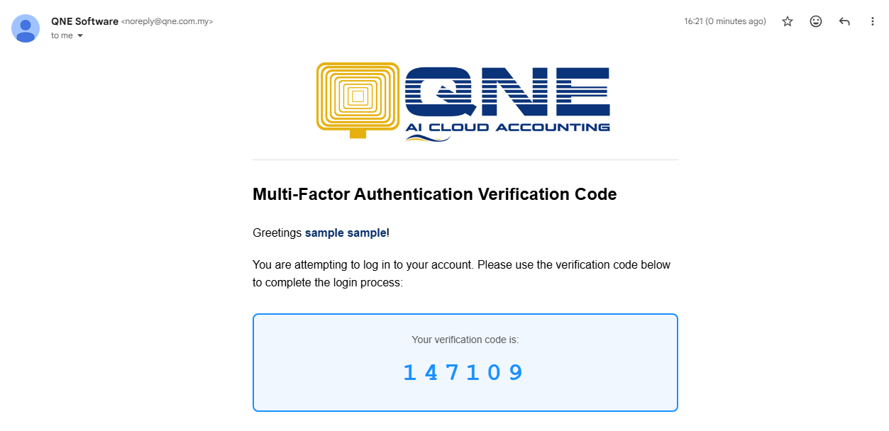 Multi-Factor Authentication (MFA) enhances account security by requiring a verification code in addition to your password. This prevents unauthorized access even if your login credentials are compromised. QNE AI Cloud Accounting supports both authenticator app–based codes and email verification to give users flexibility and added protection.