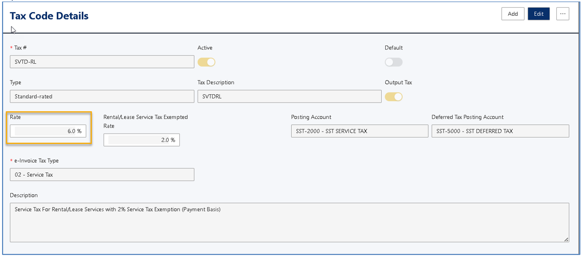 By default, this tax code is 6%