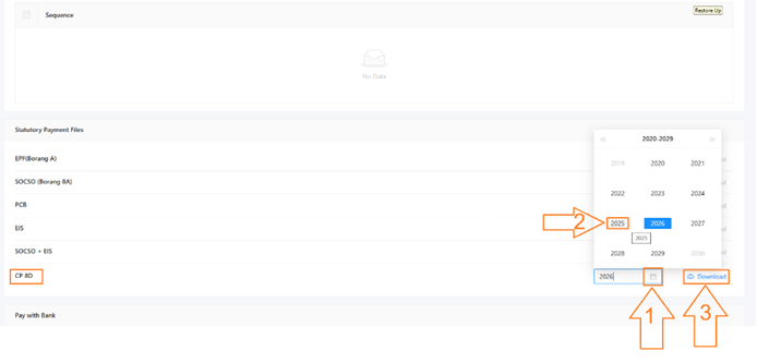 2. Click the Calendar button on CP8D > Select the Year of CP8D that want to submit > Click Download