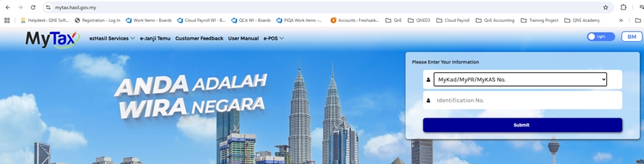 4. Login to LHDN MyTax Portal(https://mytax.hasil.gov.my/) via MyKad/MyPR/MyKas No.