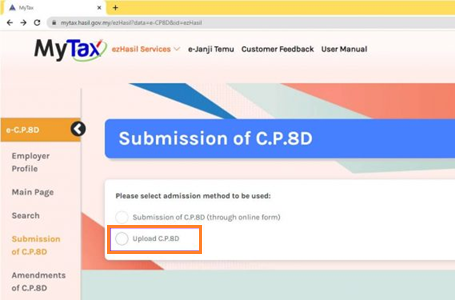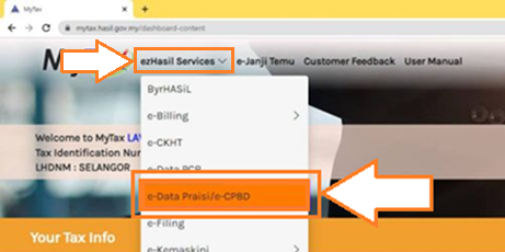 5. On the homepage, click on ezHasil Services > e-Data Praisi/e-CP8D to proceed