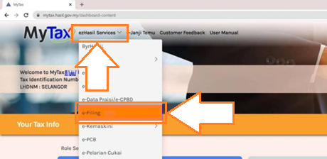 13. Click on ezHasil Services > e-Filling