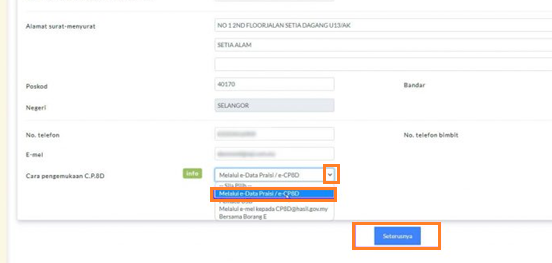 17. Locate “Cara pengemukaan C.P.8.D” > Choose “Melalui e-Data Praisi/e-CP8D” > Click Seterusnya