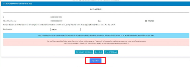 20. Fill up designation > Click Sign and Send