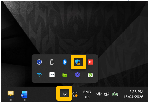 1. Click the “^” icon at the bottom-right corner of your Windows taskbar, then select Windows Security