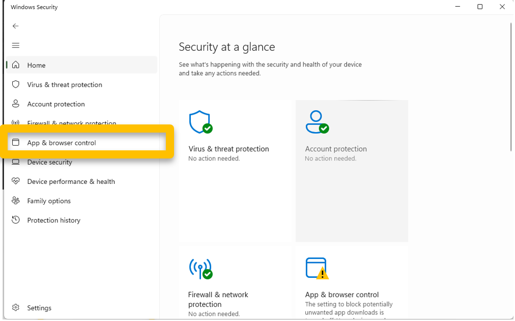 2. Navigate to App & browser control