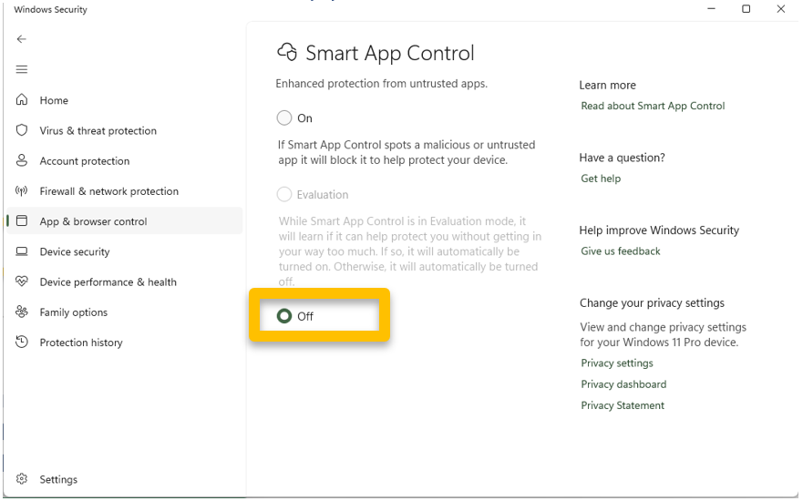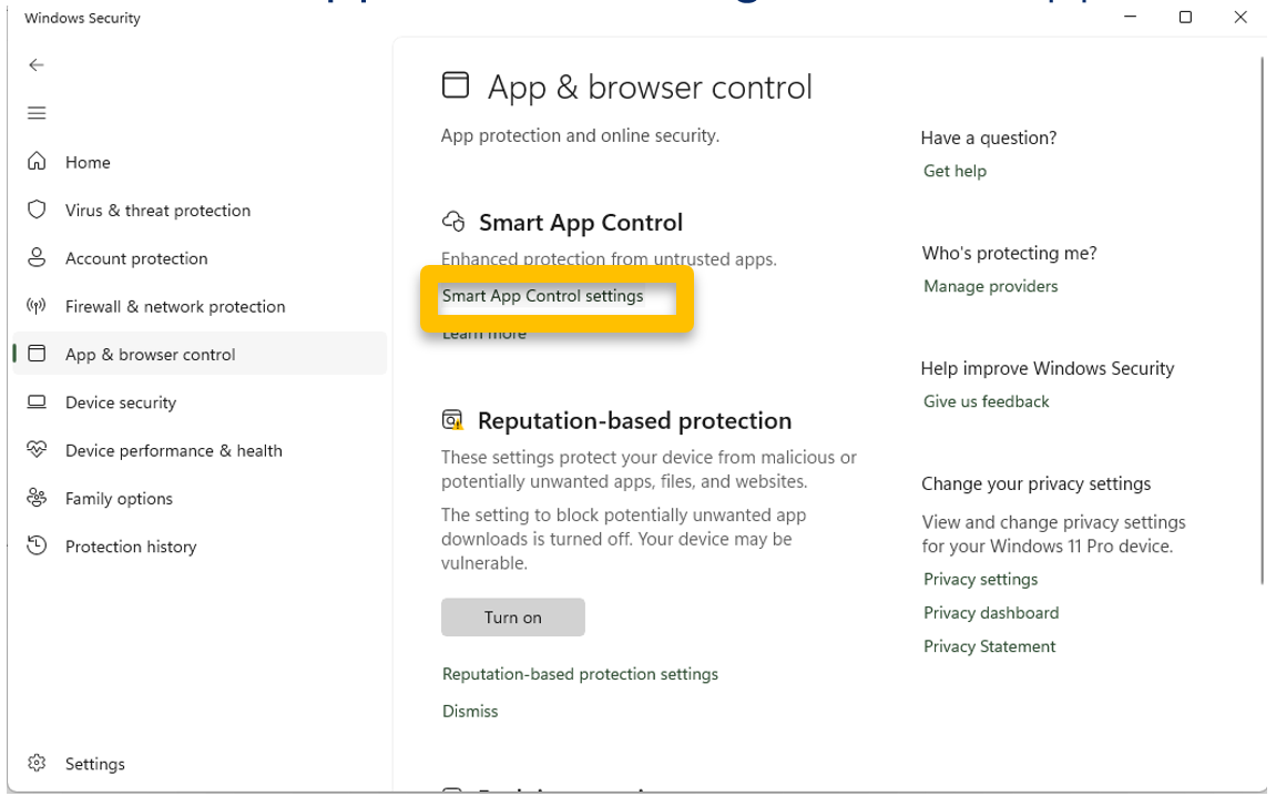 4. Turn Off Smart App Control